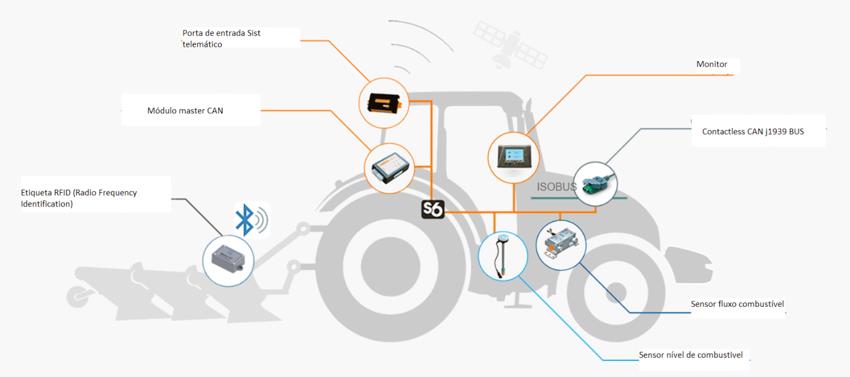 De uma forma simples e resumida os tratores são equipados de um conjunto de sensores nos seus mais diversos órgãos de funcionamento como depósito de combustível, bomba injetora, sistema hidráulico, sistema de refrigeração e lubrificação, transmissão; e desta forma torna-se possível medir em tempo real valores de temperatura, pressão, binário, aceleração e aferir quantidades. A porta de comunicação com as máquinas agrícolas que permite a interação entre os seus vários componentes (sensores e centralinas) num formato compatível é o CANbus ( Controller Area Network Binary Unit Sistem) (Figura 1), e é através do protocolo J1939 que os dados brutos num formato hexadecimal são convertidos em medidas físicas compreensíveis aos operadores humanos.