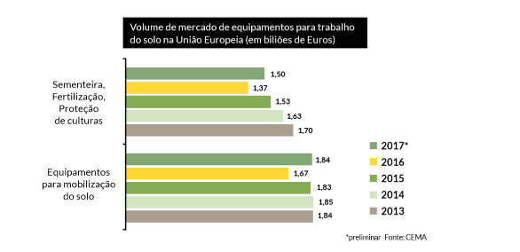 Após uma tendência de queda em 2016, o segmento de equipamentos de trabalho do solo voltou a atingir o nível dos três anos anteriores. De acordo com cálculos prévios, o volume do mercado em 2017 alcançou um total de aproximadamente €3.34 biliões, atingindo assim um aumento de 10% em comparação com o ano prévio.