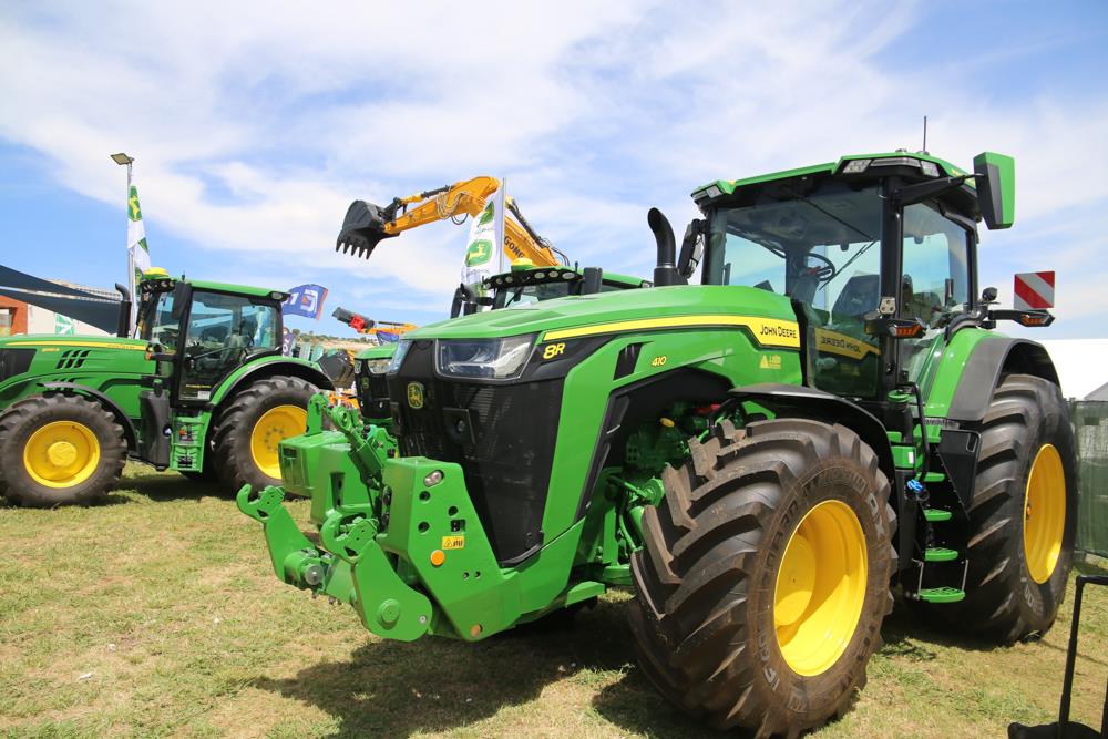 A J. Inácio marcou presença na Feira Nacional da Agricultura com algumas novidades mas é o trator John Deere 8R 410 que deixa qualquer um especado: uma imponência que impressiona sobretudo quando nos aproximamos da máquina. “É o modelo mais potente do segmento e tem um motor mais pujante, com 410 cavalos nominais e potência máxima de 456 cavalos. Possui ainda uma nova cabine e novo equipamento de luzes, dando ainda uma maior visibilidade a quem o conduz, por se encontrar num plano bastante elevado em relação ao chão”, explicou-nos Tiago Nascimento, antes de falar numa novidade absoluta.“Temos ainda o 6100M, que substitui a antiga gama MC. É um trator completamente novo, com uma bitola entre eixo de 2,40 metros mas um conceito mais pequeno, com novo design e motor. Motorizações de 90 a 120cv nominais, com incremento de 20cv de extra”, disse o chefe de vendas da J. Inácio, indicando ainda as presenças dos modelos John Deere 5090 GL e 6155R [ver caixas].