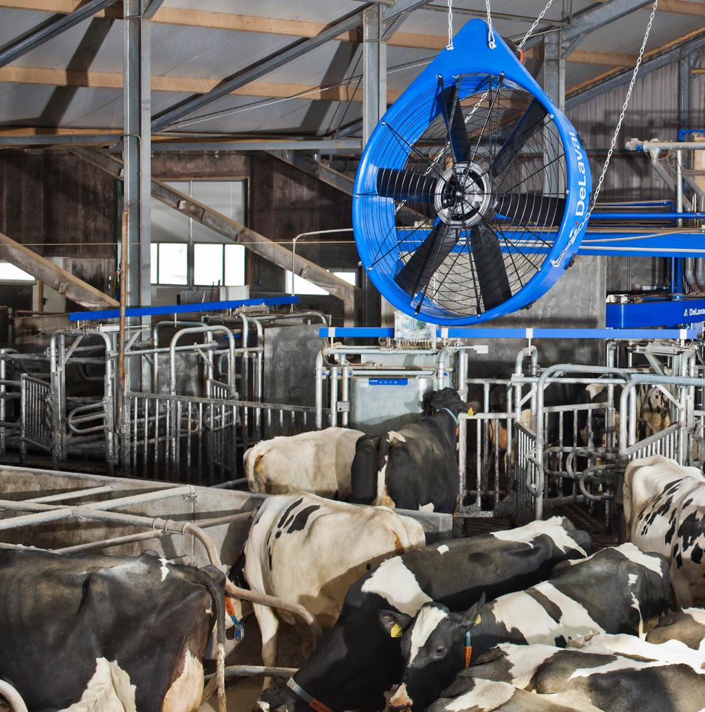 Menor velocidade do ar, pelo que não são adequadas para sistemas de gota grossa; instaladas frequentemente em número insuficiente nas vacarias; movem ar quente/ não-refrigerado.